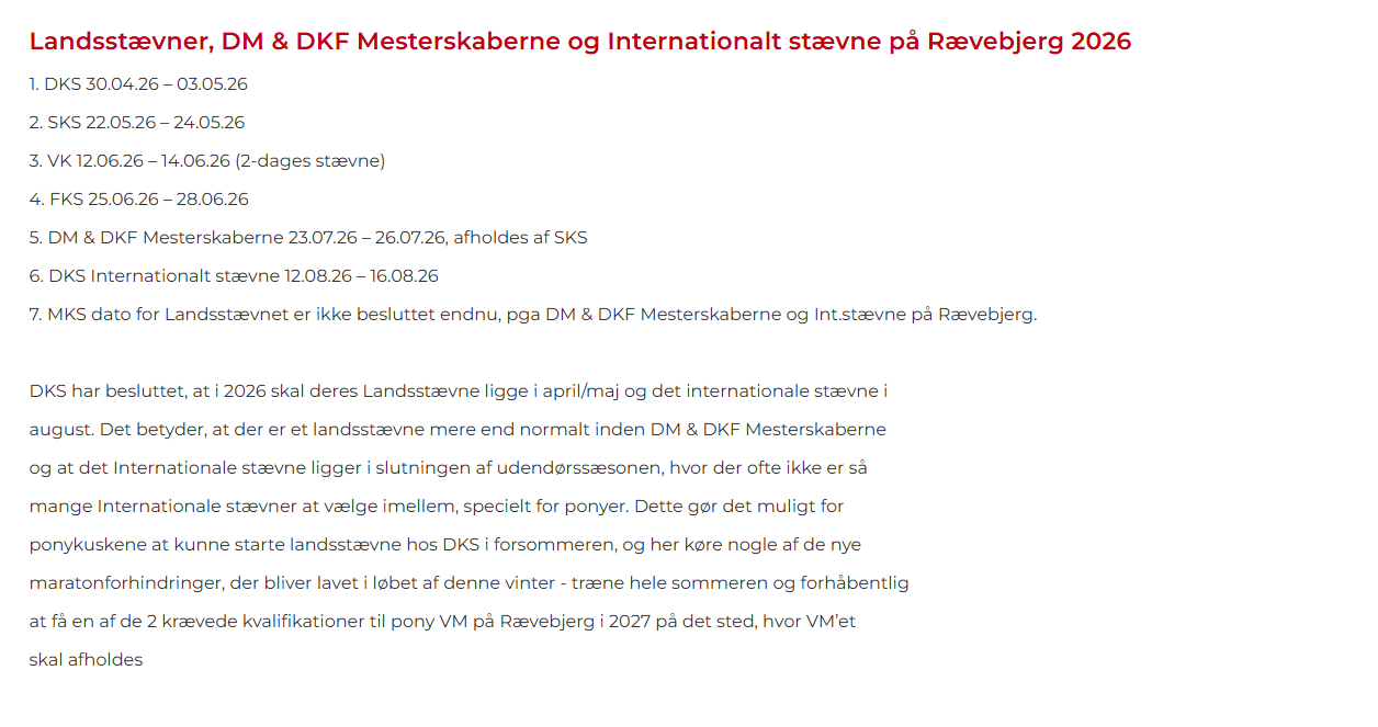 Her er en liste over de større stævner der afholdes i 2026 - Læs mere....